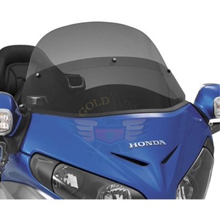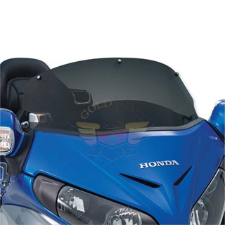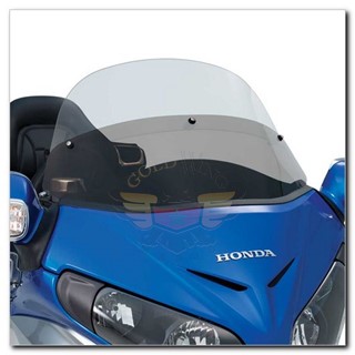 Unique Flip Adjustable Windshields. It is actually a two part windshield made from DOT approved 3/16” aircraft quality Lucite Acrylic. The lower portion is dark smoke with the flip upper portion clear. The upper portion can be flipped in seconds from hiding behind the lower portion to extending above the lower portion increasing the overall height. The 20-128 is available for the Honda GL1800 Goldwing and flips from 9-1/2” to 21-1/4” in seconds. Each windshield comes with two sets of hardware, use the quick release thumb screws or blind mount allen head cap bolts.
