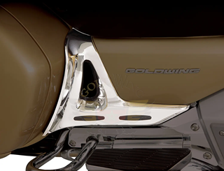 Cette paire de chrome ABS frottement des plaques de caoutchouc et remplacera le plastique noir mat OEM assiette sur la GL1800. Chrome brillant avec contraste élevé inserts en caoutchouc noir d'un grand oeil. Ils monter rapidement et facilement avec des vis. Ces batteries couvre coordonner côté merveilleusement bien avec le n ° 52-724 Voir Chrome & Rubber Frame Covers. Fits Honda GL1800 GoldWing.