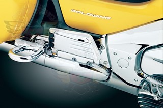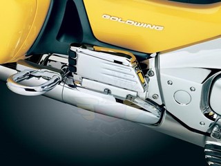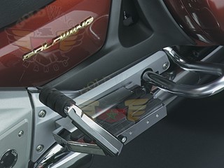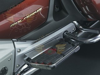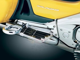 Küryakyn Transformer Floorboards blend style, function & comfort. A direct replacement for the stock passenger floorboards, the Transformer Boards bolt on in minutes. Even when not in use, these finely chromed boards are a great improvement over the dull aluminum stock units. When folded down, they offer a secure, comfortable perch for passengers. The stock height adjustability is still fully functional on GL1500 SE Models.The most important & unique feature of this system is the hidden retractable passenger cruise pegs. A folding arm & footrest deploys to provide an alternate foot position 4-1/2" higher & 5-1/2" farther forward than the stock foot position.Fits: '01-'09 GL1800 (pr)